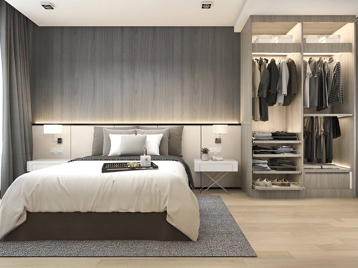 Serene bedroom spaces crafted for relaxation and organized living that uplifts the mood.